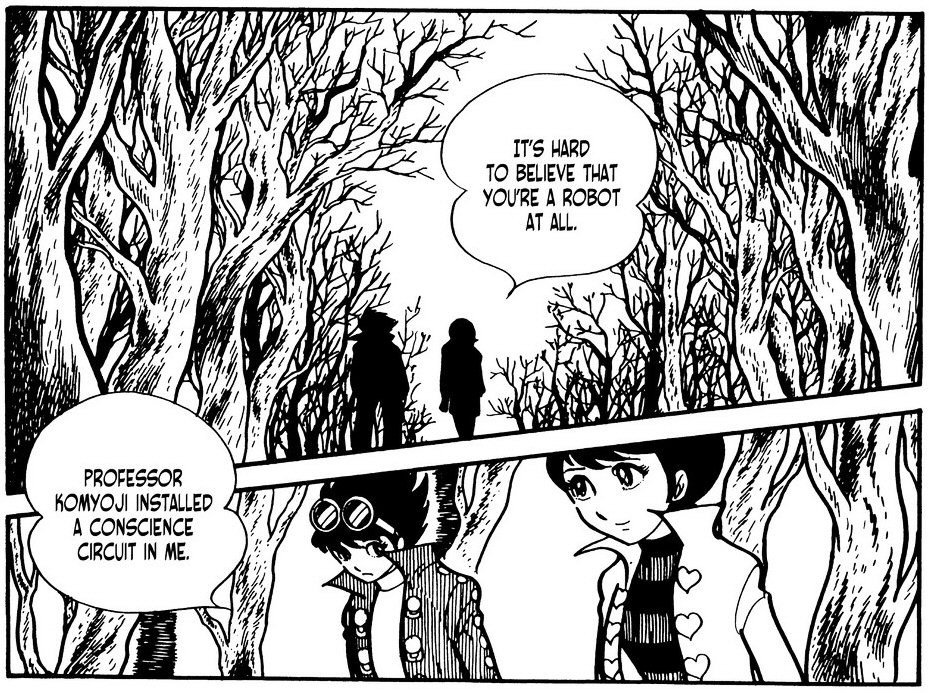 Ha pedig kicsit mg ennl is jobban tovbb akarjuk gondolni a dolgot, akkor lltsuk egyms mell Jiro s Gill karaktert. Itt van Gill, egy szvtelen ember, egy hideg, rlt figura. Msra sem vgyott csak hatalomra, ha kellett, akkor mindenkit elpuszttott maga krl, csak hogy megszerezze, embereket, robotokat egyarnt. A sajt gyerekeit arra hasznlta, hogy tervrajzokkal tetovlja ki s gy hasznlja fel ket. Szmra mindenki csak eszkz volt. Jiro is. De pont emiatt vlhatott belle vgl "ember." Mert Gill csak egy felhasznlhat robotot ltott benne. Gill gy akarata ellenre is ersebb tette Jirot. Viszont valjban ez az egsz Jiro akarata ellenre is trtnt, mert soha nem vgyott arra a "gonosz szvre" amit vgl megkapott. Enlkl viszont soha nem lehetett volna ember. Mg ha csak llekben is. Ha Jirot nzzk, akkor nyugodtan elmondhatjuk, hogy robotknt is tbb embersg s jindulat szorult bel, mint Gillbe emberknt. Ez viszont rszben a lelkiismeret-egysgnek ksznhet, ugye. gyhogy nem is tudom, hogy ez a pont mennyire llja meg itt a helyt most. De ettl fggetlenl elgondolkodtat. Egy j llekkel megldott robot s egy gonosz szvvel rendelekez ember. A vgs krds pedig az, hogy Jiro vajon boldogabb lett-e, hogy vgre, ha ilyen ron is, de ember vlt belle?