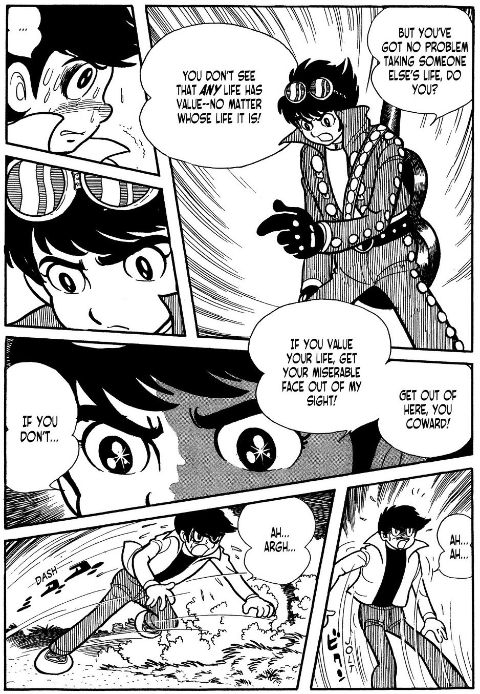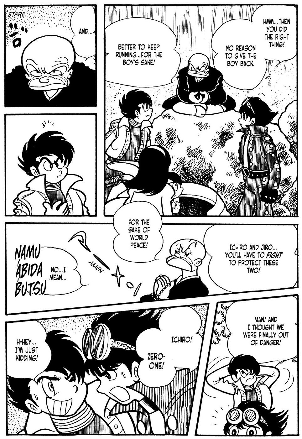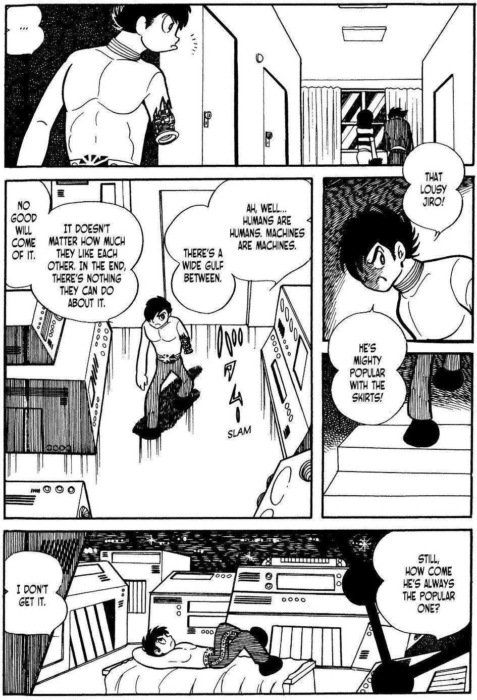 Ezek utn jn az sszecsaps a Kuya & Kaito prossal (a mangban a nevk A s Nu), plusz a medve persze. Ja, idkzben Hattori is visszatallt a trtnetbe, most mr az rtelmesebb (khm) nmagaknt. Magban a harcba nincs is semmi, sokkal inkbb az az rdekes, hogy mi trtnik a vgn. Az animben Masaru knyrg Jironak, hogy ne pusztsa el a robot prost, itt viszont Mitsuko az, aki lehorja Jirot rte. Tnyleg, csak megmentette mindenki lett, ez bn. Ez pedig... jabb okot ad Jironak, hogy lelpjen. Ez a... nem is szmolom hnyadik alkalom. Mitsukoval olyan se veled, se nlkled kapcsolatban vannak, gy rzem. De brom Jiro konklzijt az esettel kapcsolatban: "No matter what they say... Women are soft for a pretty boy!" Ooh... Ht ez a baj.