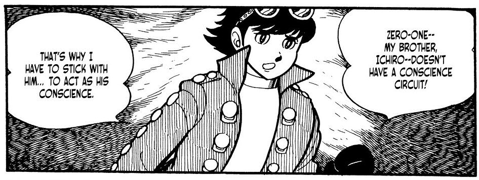 Ezrt is rtam az anime rsznl, hogy Jiro nem marad meg annak a tipikus egysk jfinak aki mindig ott terem mikor szksg van r s mindenkit megment, jszv s csak jt cselekszik, igazi pldakp. Most mr nem. Jiroban mkdsbe lpett Gill egysge, gy a j mellett felbukkant a rossz is. Az apjtl, aki megteremtette, megtanulta mi a j, a legnagyobb ellensgtl, akit meglt, pedig megtanulta mi a rossz. Ami pedig ersen az irnia a dologban, hogy Gill mindvgig vgezni akart Jiroval, de vgl volt az aki ltal kzelebb kerlt ahhoz, hogy "igazi emberr vlhasson." Most mr a lelkiismerete rk harcban ll a benne mkd gonosszal, gy lehet, hogy testben robot, de "llekben" emberr vlhatott. Ishinomori... minden elismersem.