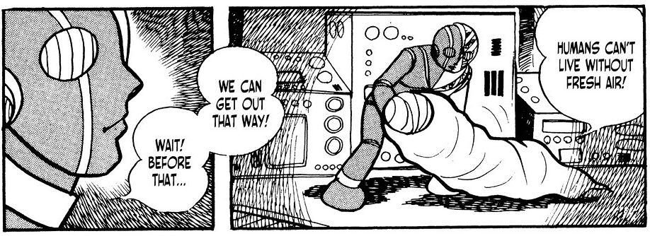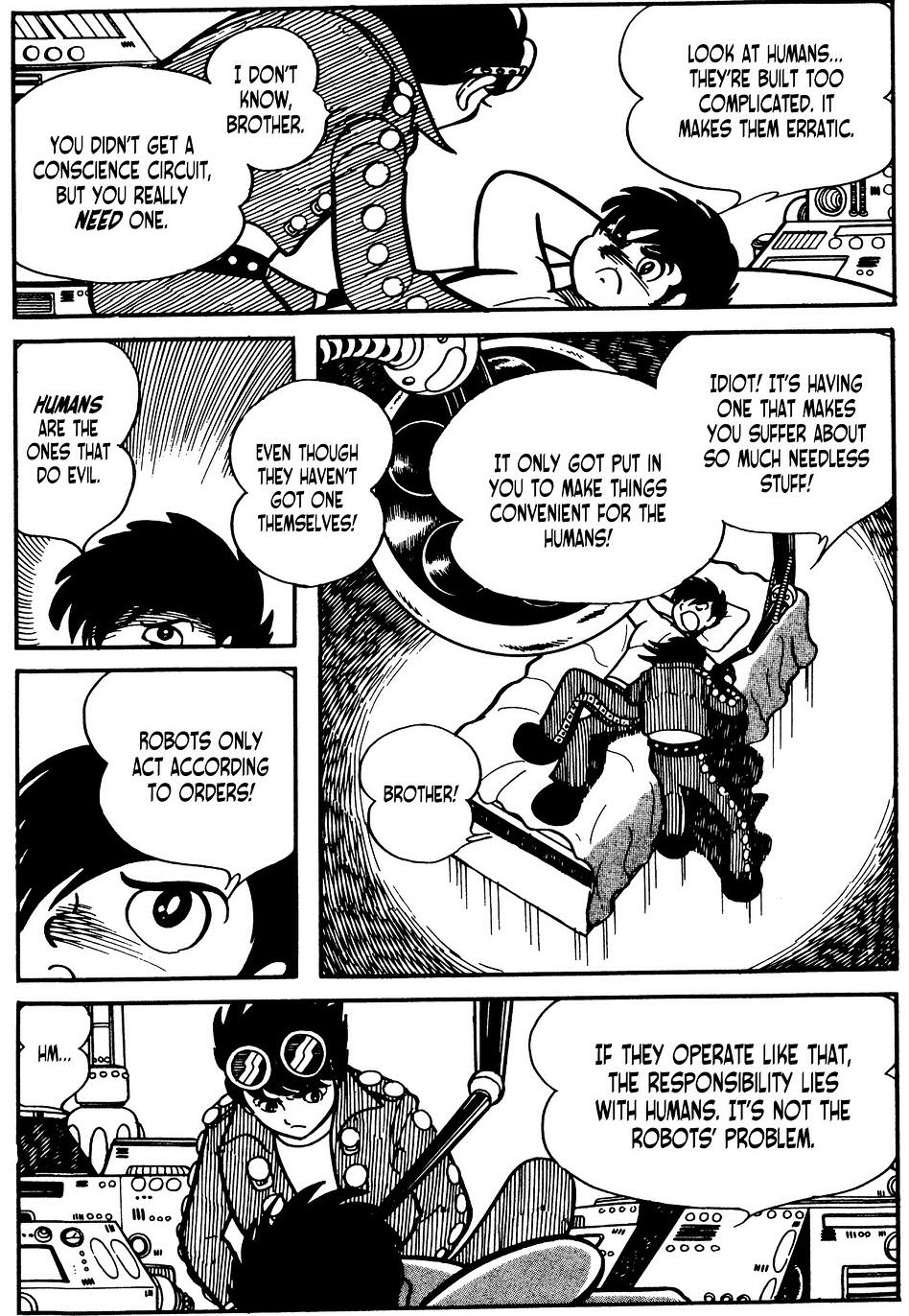 Most pedig elrkeztnk a legfbb pontjra ennek a trtnetnek, a tetponthoz. Jiro s csapata megtmadjk a legfbb fegyvert, ami tulajdonkppen egy felfegyverzett, mozg erd. Mindenkit elkapnak kt msodperc alatt, s tprogramoznak. Innentl Gill emberei. Kivve Jirot, el van klntve a hres-hirhedt lelkiismeret-egysge miatt. Gill nem kockztatott, amg nem tudja azt deaktivlni, addig Jiro gy marad. Persze bel is rakott egy egysget ami arra hivatott, hogy az emberv tegye. Ez egy lnyeges pontja a trtnetnek innentl. St, ez az egyik leglnyegesebb pontja az egsz mangnak. Gill aztn mkdsbe hozza Jiroban az egysget amit nemrg teleptett a srcba s navan abban remnykedik, hogy az majd elnyomja a flig ksz lelkiismeret-egysget, gy irnythatja Jirot is. Aztn mint aki jl vgezte dolgt, lelp mert dolga van. Teljesen logikus lps.