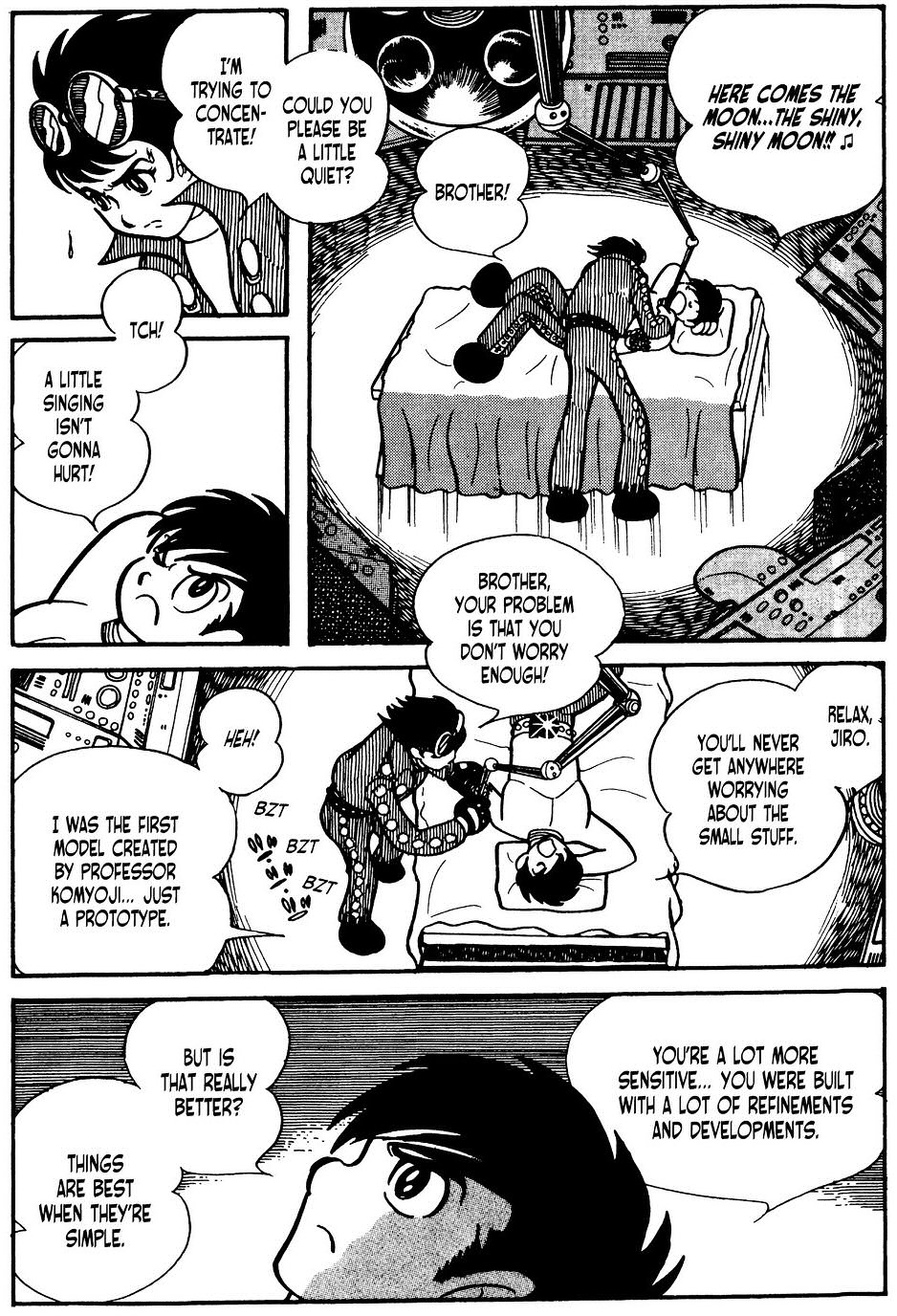 Ugorjunk inkbb egy kicsit s hagyjuk ki azt a rszt, mikor a szemgoly lovag szemgolyja elszll kmkedni. (Nem is tudom mi aggasztbb, hogy kikmleltk ket, vagy az, hogy egy lebeg szemgoly van az ablak eltt.) Ichiro egyik karja leszakad a harcok sorn, Jiro pedig leviszi a pincben lv laborba, hogy megjavtsa. Hmm, ismers jelenet? Igaz ez kicsit sem annyira flrerthet, mint az anime adaptci Mitsukoval s Jiroval. Van egy olyan rzsem, hogy ezt a jelenetet alaktottk t s tettk bele az anime verziba, gy pedig megteremtettk az egyik legemlkezetesebb rszt. Viszont attl fggetlenl, hogy Jiro s Ichiro szerepelnek egytt a manga verziban ennl a rsznl, mg rdekes s szerintem egy igazn jl megoldott jelenet.
